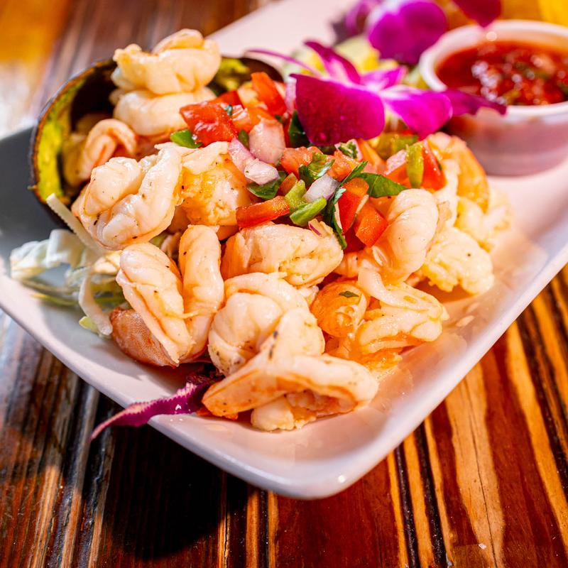 Chilled shrimp marinated in lime lemon, and orange juice with a slice of avocado and pico de gallo. Both delicious and healthy!