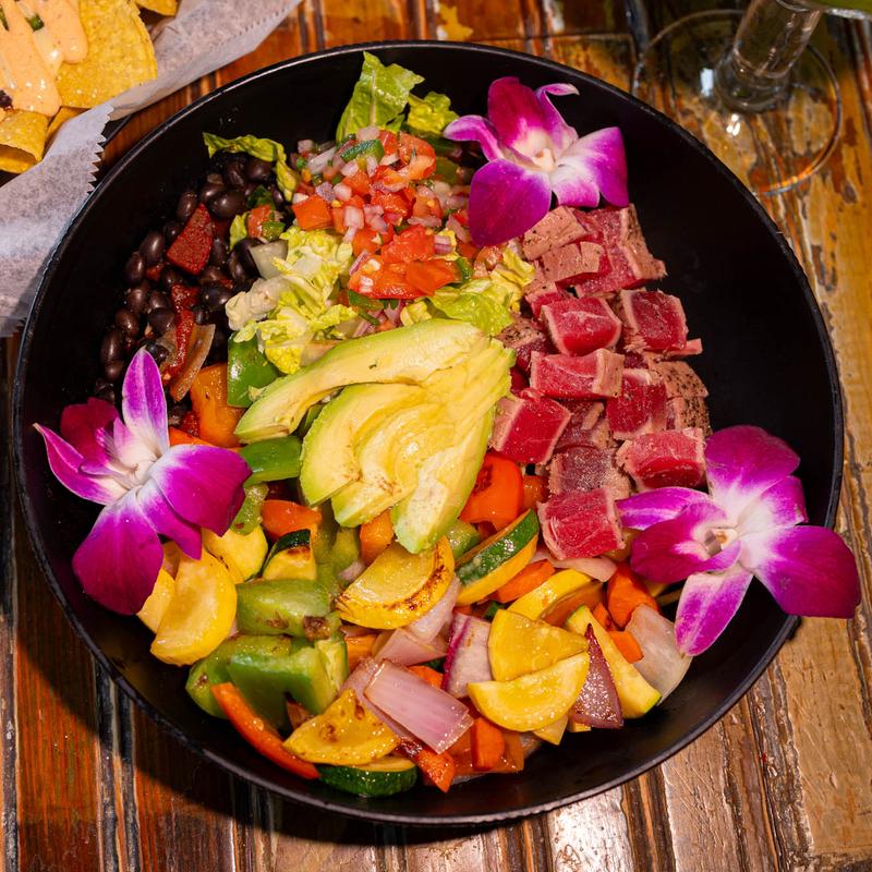 Blackened Chicken $12.95 | Brisket $13.95 | Spicy Shrimp $13.95 | *Ahi Tuna $14.95 • White rice, black beans, avocado, pico de gallo, romaine lettuce. Substitute veggies instead of rice +$3.00